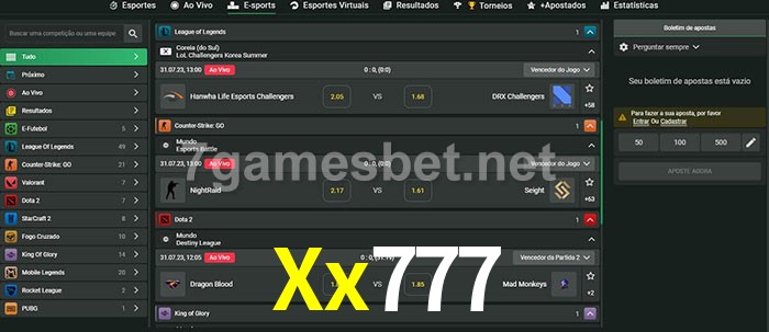 O Xx777 oferece uma grande seleção de opções de apostas em e-sports com probabilidades competitivas